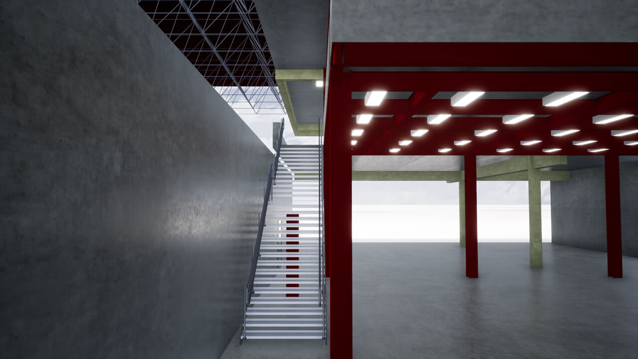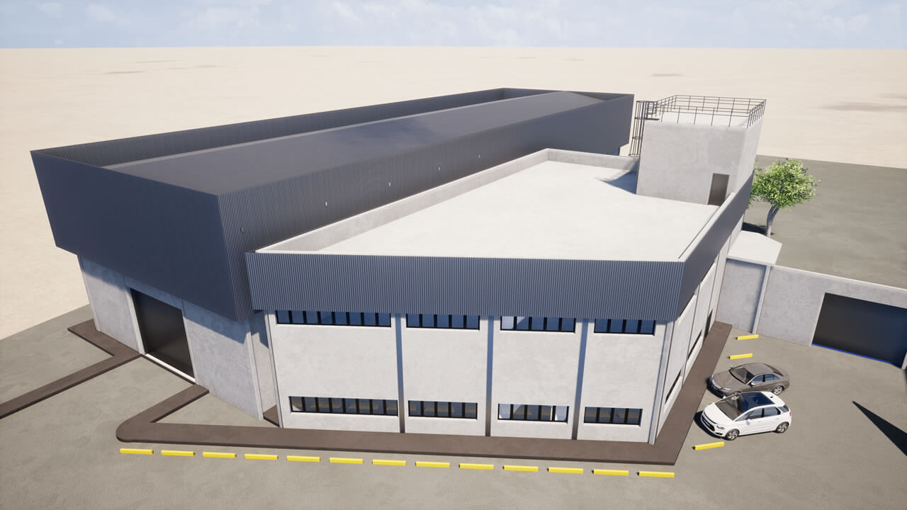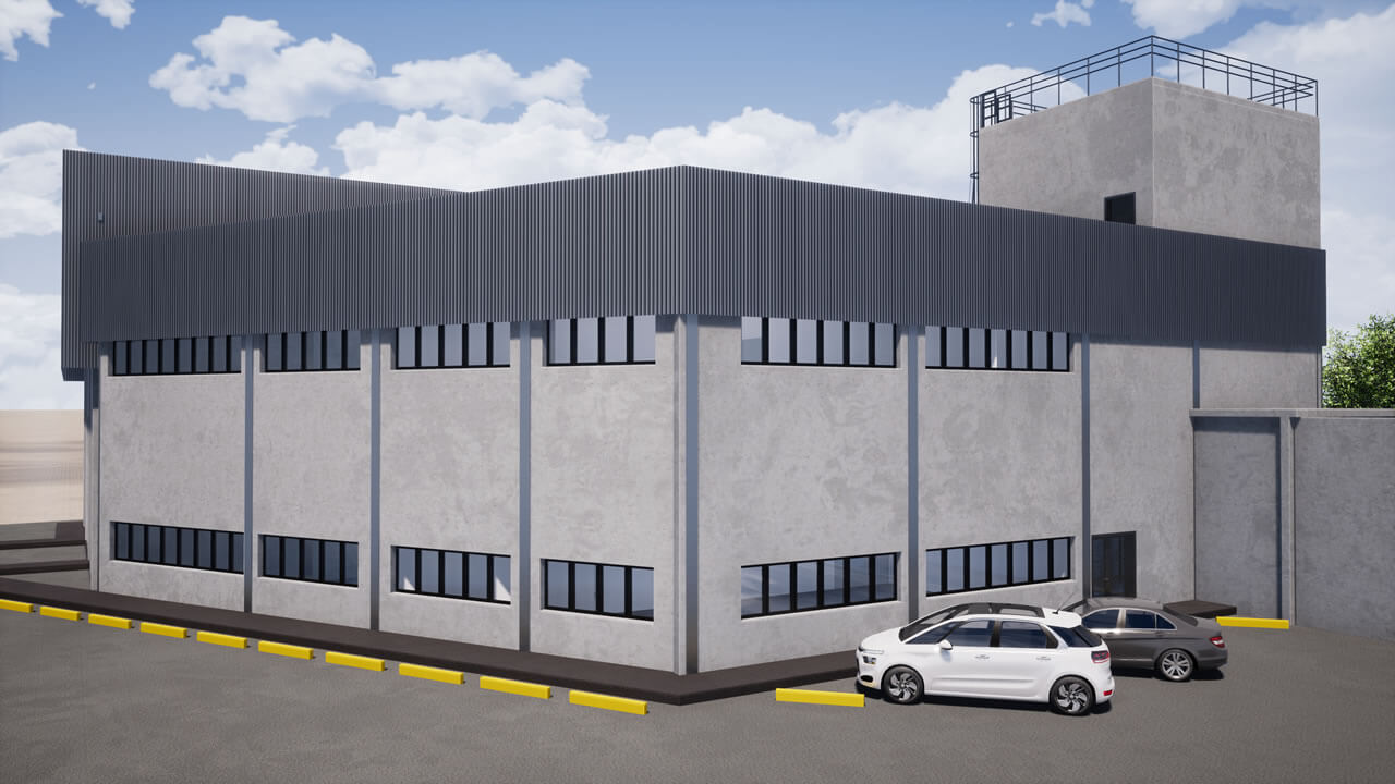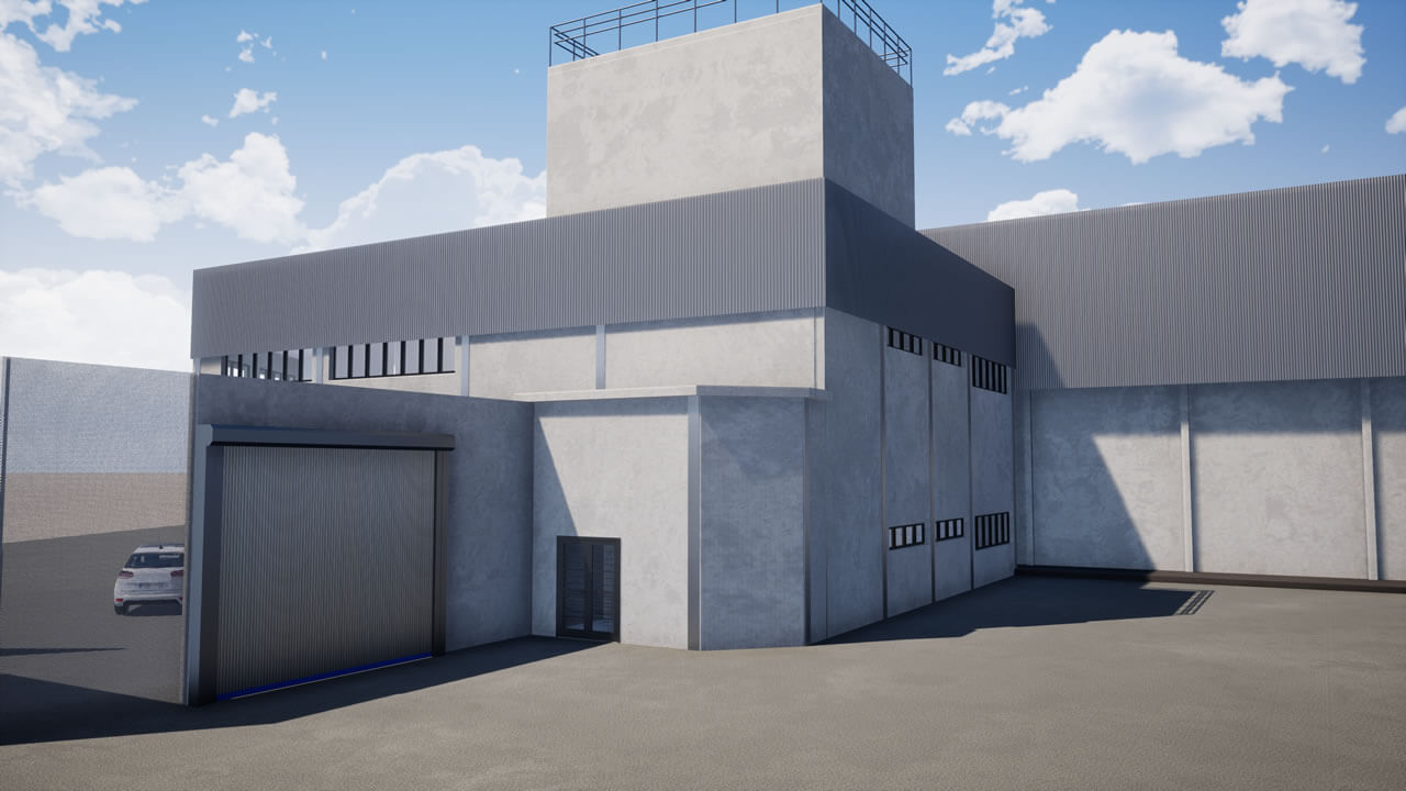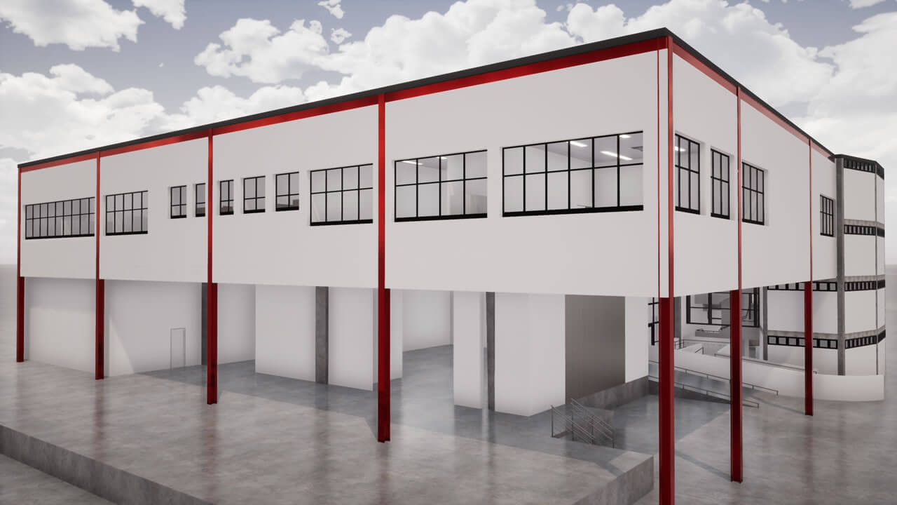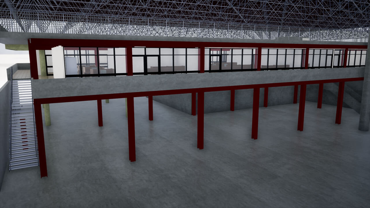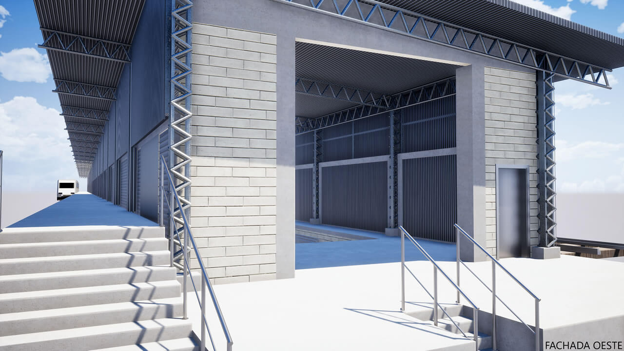 Projeto de um galpão que será utilizado para inspeção de materiais, com área administrativa, laboratórios de ensaios mecânicos, químicos e elétricos, além do arquivo operacional e inventário permanente. Será habitado por aproximadamente 52 funcionários. Com estrutura metálica, fechamentos externos em alvenaria com pintura acrílica, divisórias internas em drywall resistente à fogo, caixilharia para conforto térmico; na fachada, foi previsto fechamento com telhas trapezoidais para que haja uma correlação com as edificações próximas.