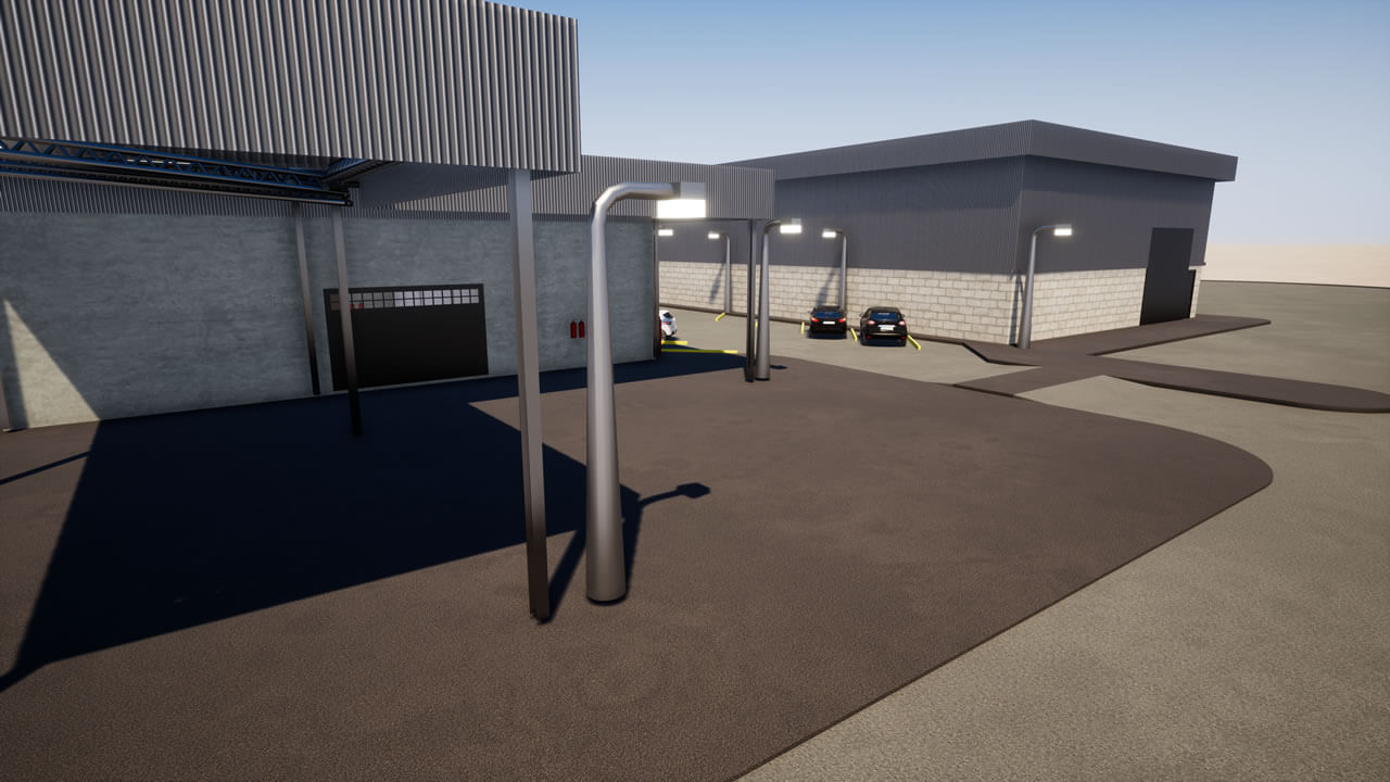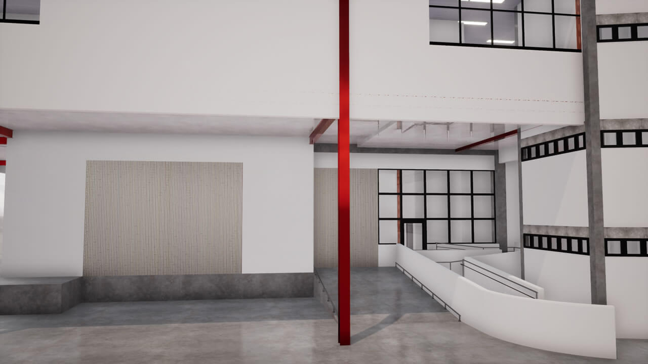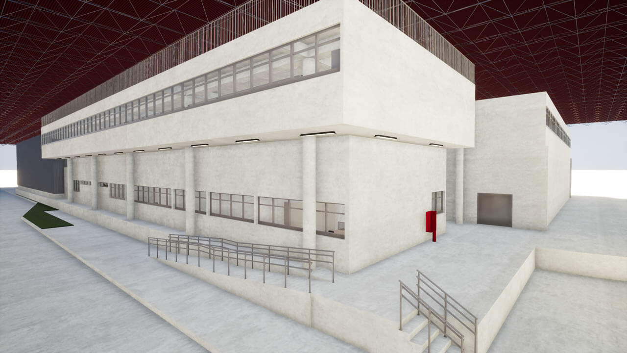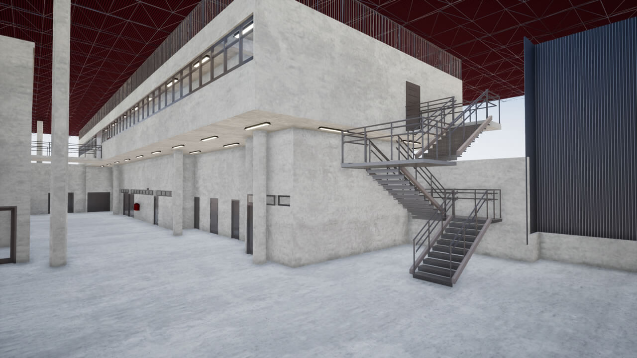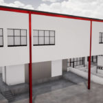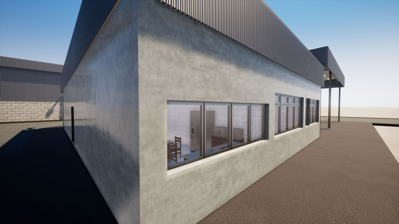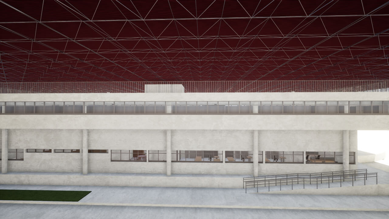 Projeto de um galpão que será utilizado para inspeção de materiais, com área administrativa, laboratórios de ensaios mecânicos, químicos e elétricos, além do arquivo operacional e inventário permanente. Será habitado por aproximadamente 52 funcionários. Com estrutura metálica, fechamentos externos em alvenaria com pintura acrílica, divisórias internas em drywall resistente à fogo, caixilharia para conforto térmico; na fachada, foi previsto fechamento com telhas trapezoidais para que haja uma correlação com as edificações próximas.