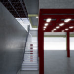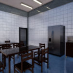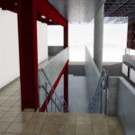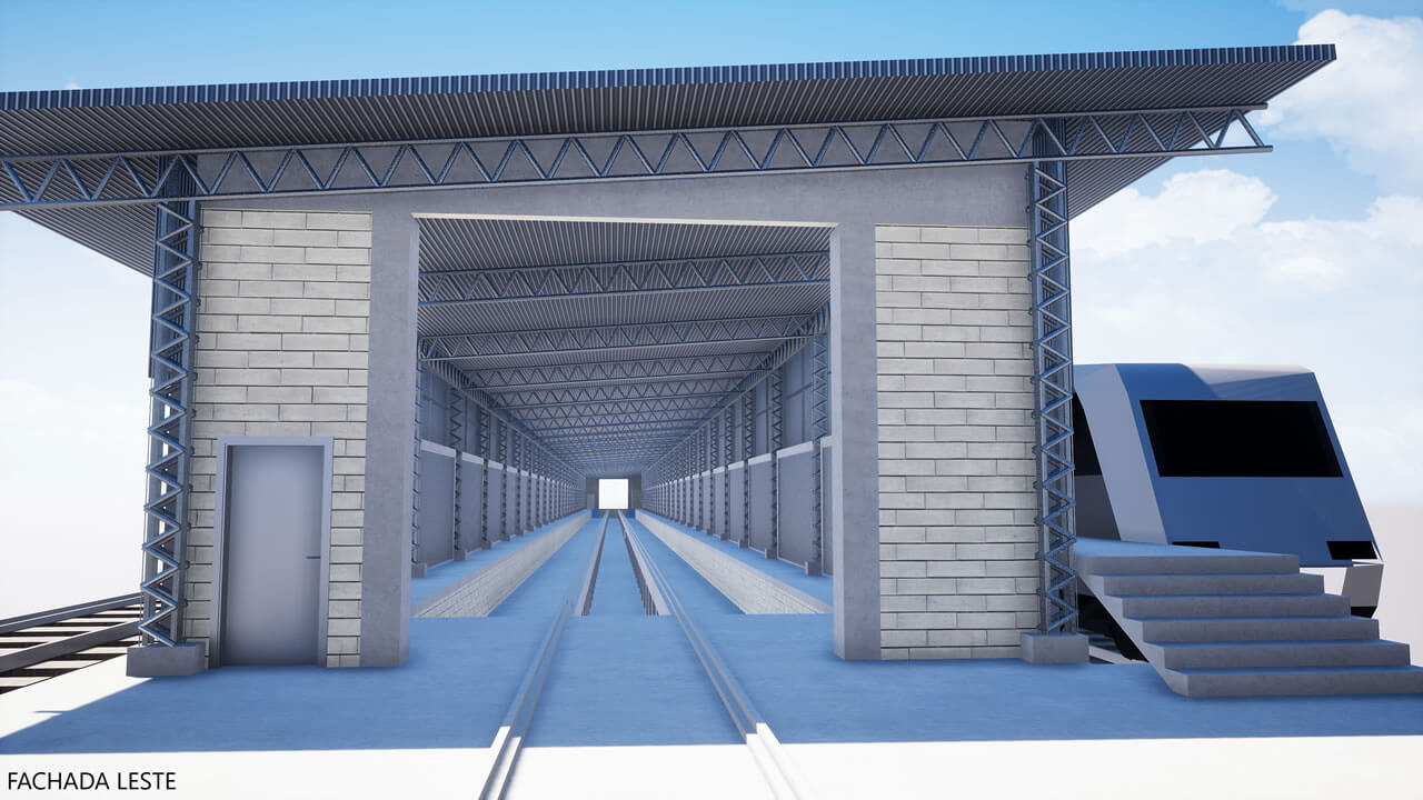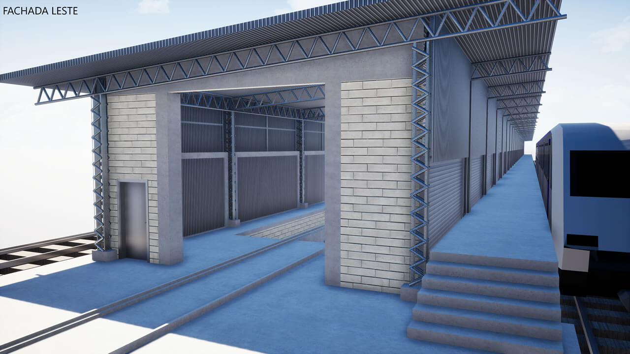 Local para armazenagem e entrega de uniformes. O projeto conta com sala de espera, área de armazenagem, sanitários e copa. O projeto considera dois acessos ao espaço: um pela área externa e outro no nível dos bloqueios na estação da linha 3 de Metrô Pedro II. A estrutura nova é metálica, o fechamento de vãos existentes em laje de steel deck. A área de projeto foi limitada pelos fechamentos laterais que criavam um espaço subutilizado, e, em termos de pé-direito, pela estrutura espacial da cobertura existente.