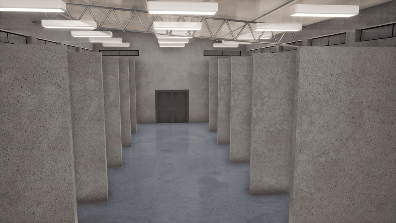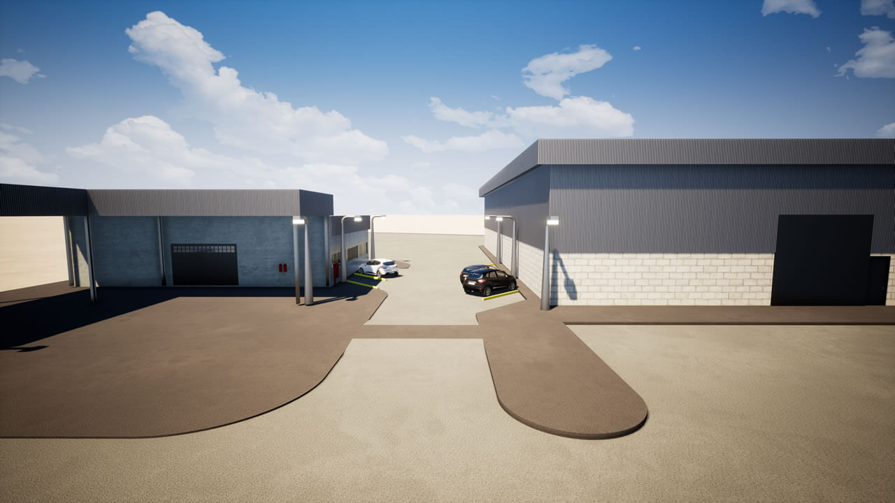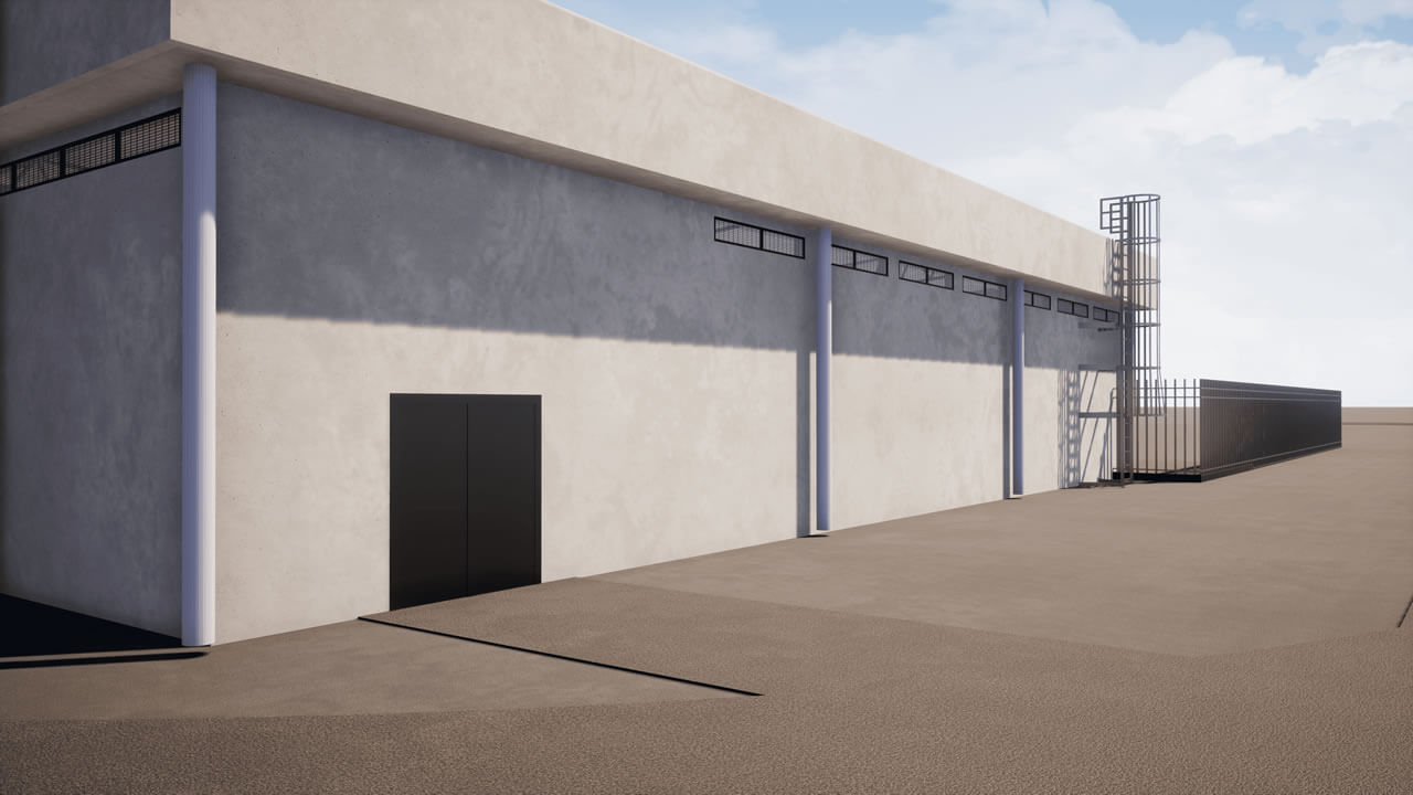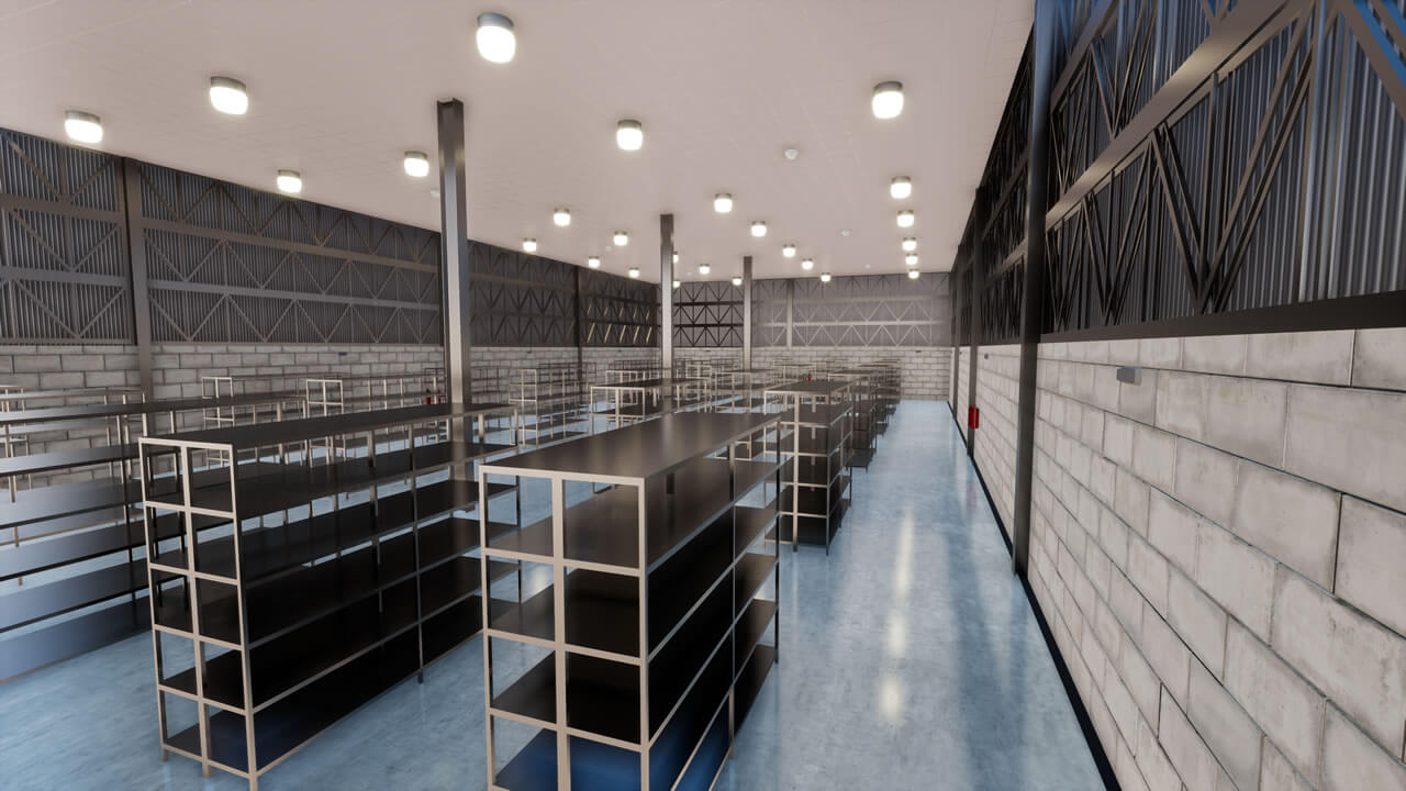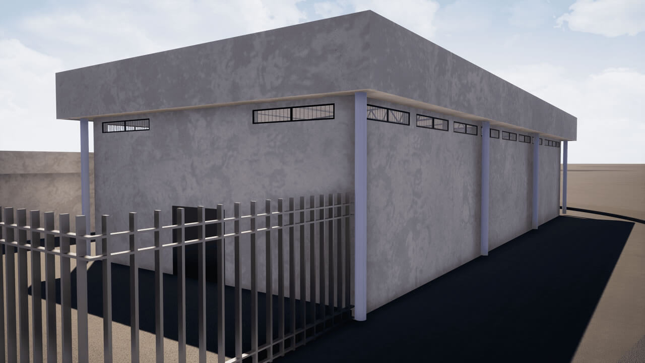 Projeto de um galpão para armazenagem de resíduos perigosos. Para concepção projetual, foram avaliadas as normas de Combate à Incêndio vigentes, sendo necessário a instalação de grelhas de contenção em todas as baías, ventilação natural, baía especifica para armazenagem de líquidos inflamáveis e sala administrativa. O galpão possui estrutura metálica, fechamentos e paredes internas em alvenaria e caixilhos altos, na fachada, fechamento com telhas trapezoidais para se criar uma similaridade com o galpão próximo existente.